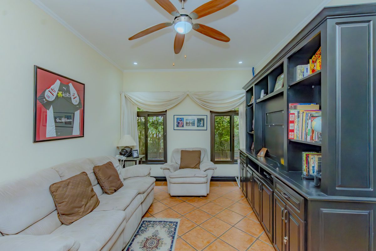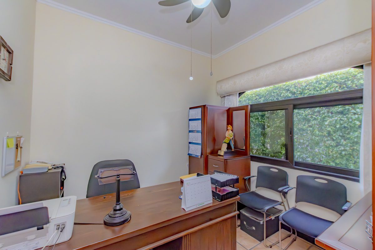 Ambientes adicionales: Medio baño para visitas, oficina privada, sala de TV y un ático espacioso ideal para bodega.