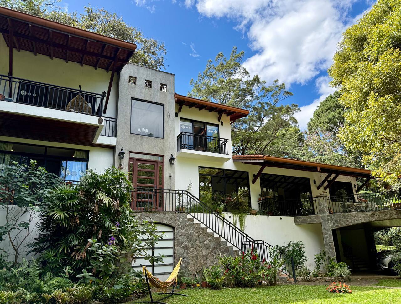 Descubre la casa de tus sueños en el exclusivo Condominio Montaña del Sol, Santa Ana. Esta impresionante residencia combina lo rustico y el confort con la tranquilidad de un entorno natural incomparable, rodeada de abundante vegetación y fauna silvestre, clima fresco todo el año y vistas panorámicas al valle central y las montañas.